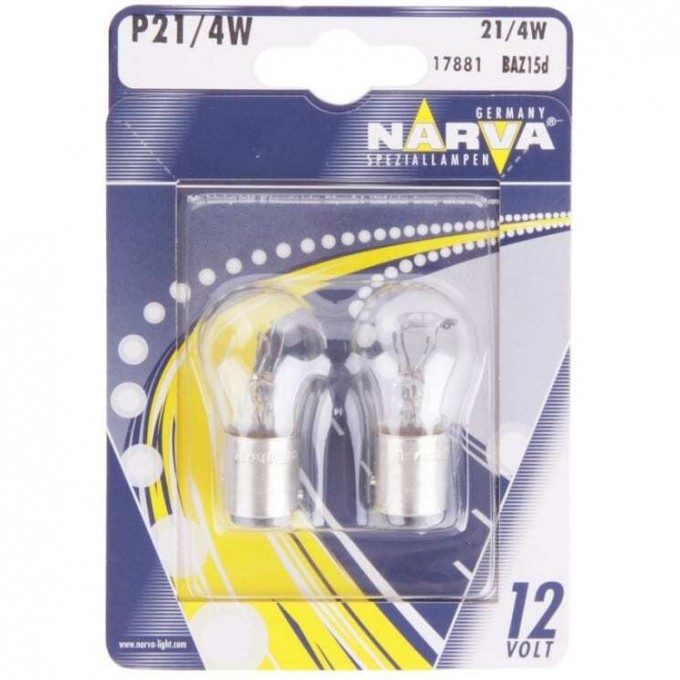 Лампа NARVA P21 4W 12V BAZ15d 2 шт. 117112282