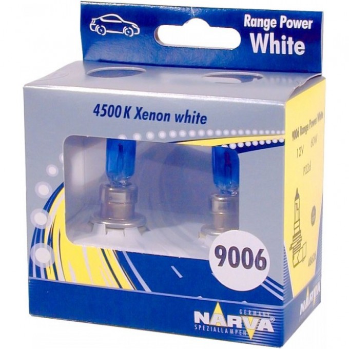 Автолампа NARVA HB4/9006 55 P22d RANGE POWER WHITE - источник освещения для установки на автомобиль. Модель отличается надежной и эффективной светоотдачей. Прослужит длительное время. Лампа подходит для установки в качестве ближнего и дальнего света фар.